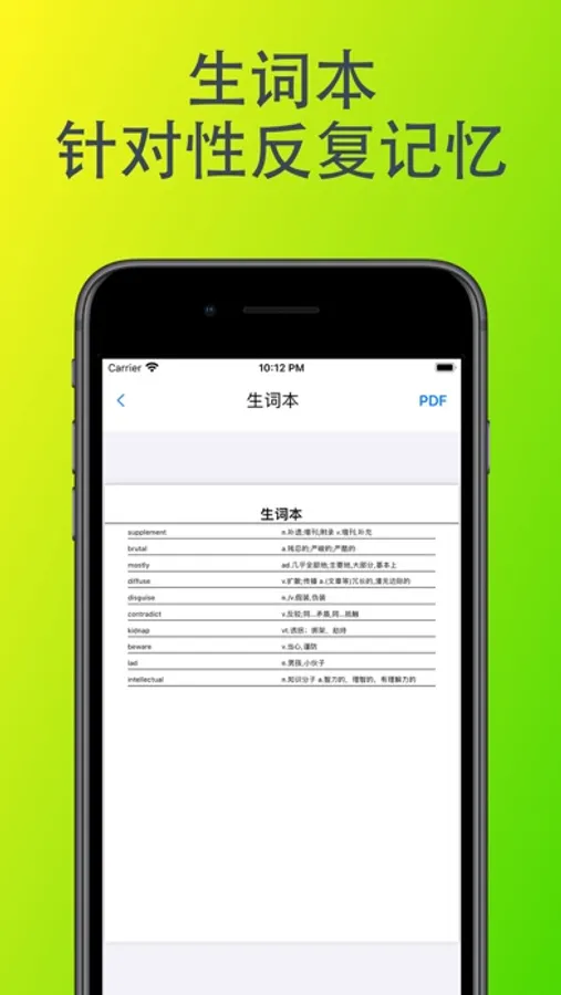 8 导出PDF:可导出生词本和词汇单词。
