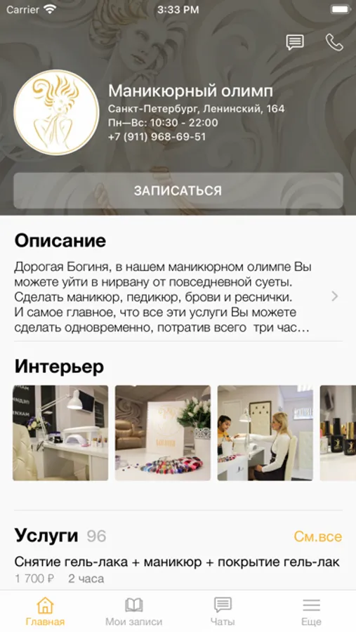 Дорогая Богиня, в нашем Маникюрном Олимпе Вы можете уйти в нирвану от повседневной суеты. В нашей атмосфере уюта и спокойствия к Вашим услугам мастера по маникюру, педикюру, бровисты и ресничные феи.