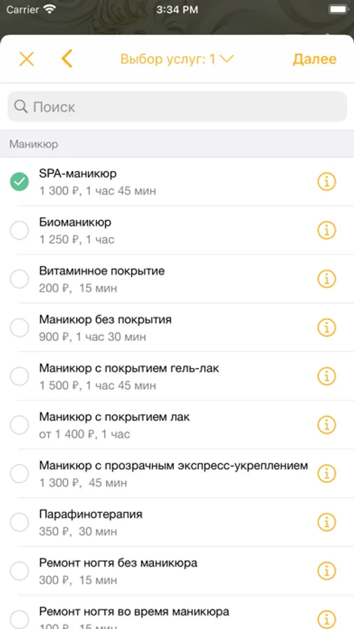 * просматривать портфолио работ мастеров