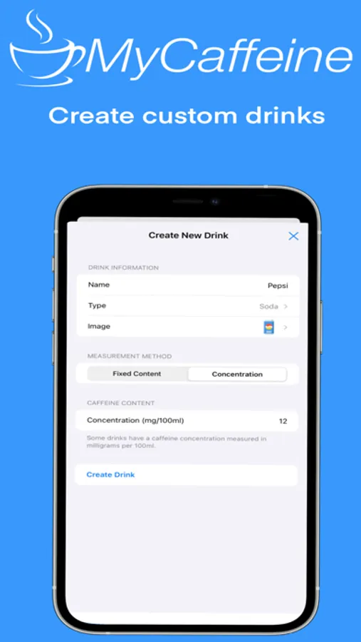MyCaffeine allows you to track your daily caffeine intake. It allows you to create your own custom beverages that suit your own needs.