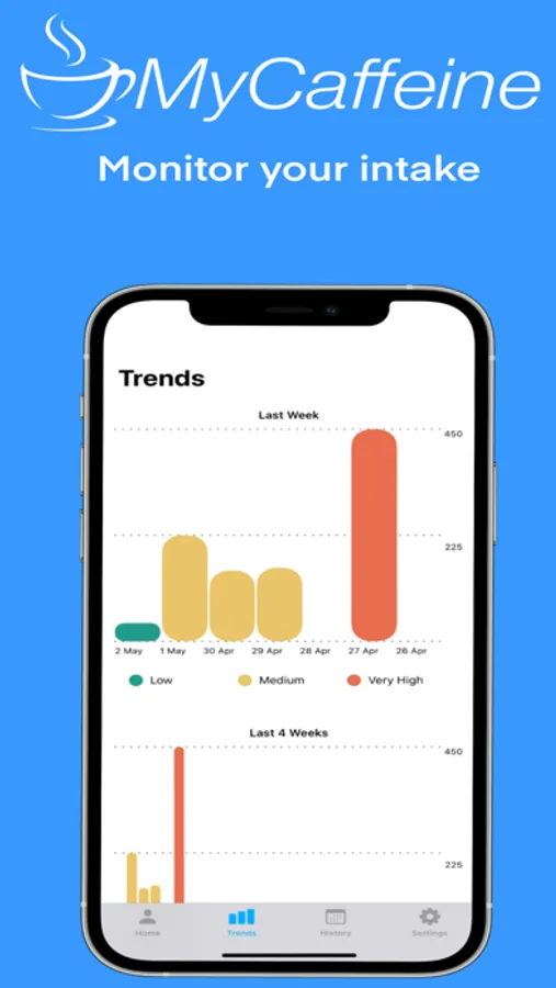 - Weekly and Monthly reports to better understand your long-term caffeine intake.