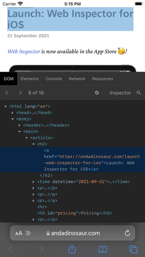 Web Inspector expands Mobile Safari with a set of web development tools: