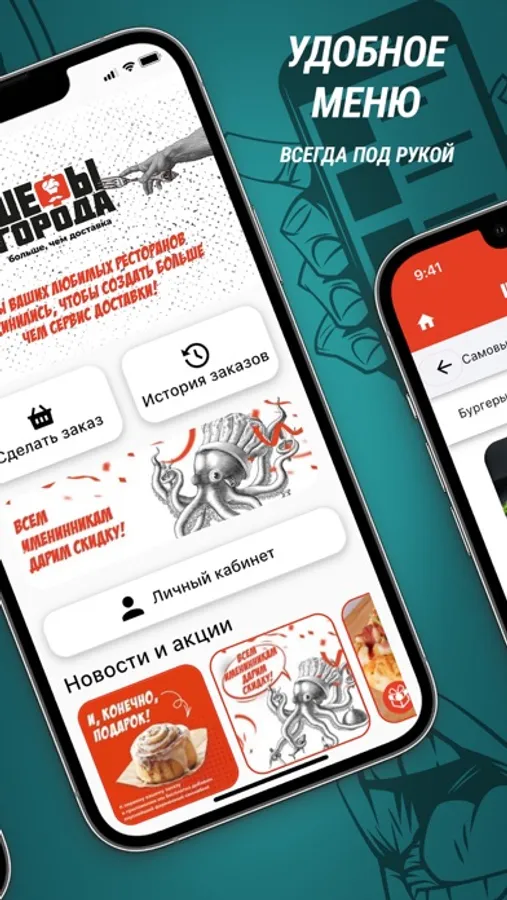 Приложение для заказа еды на доставку и самовывоз из ресторанов города Омска.