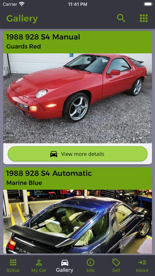 App users can opt-in to get notifications, for example when a 928 comes up for sale.