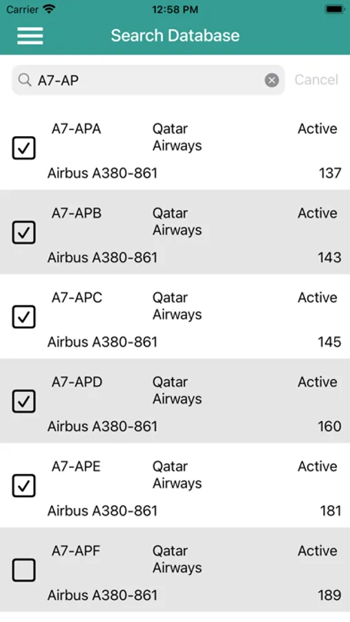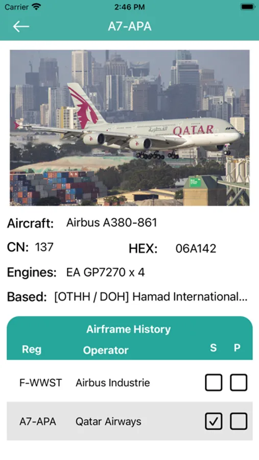 - Search Aircraft. With the search feature, you can type a whole registration (or part of) to view matching results. Once searched, you can quickly identify whether you have seen the aircraft or not, as well as also having the option to view more information about it.