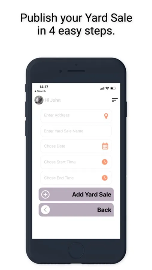 • Register on the Yard Sale app by creating an account and filling out the required information.
