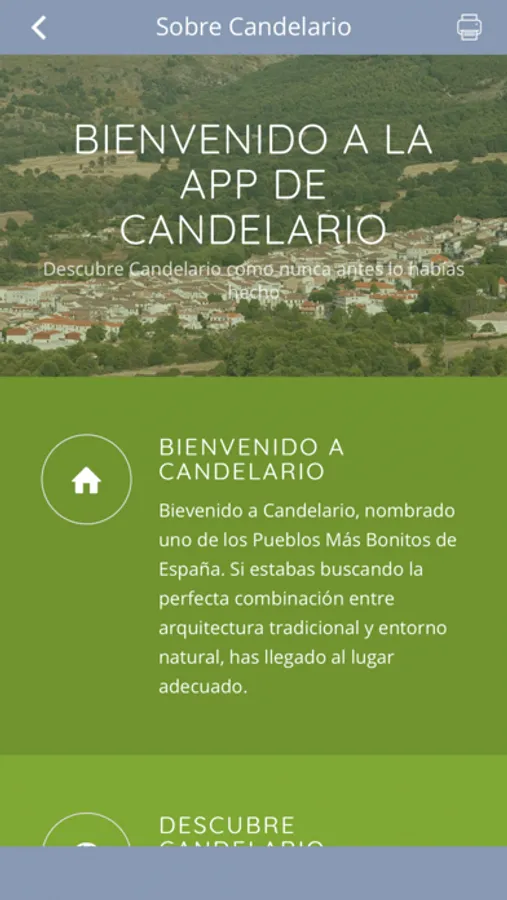 App pensada para funcionar como guía de visitas, para turistas que visitan el pueblo de candelario en Salamanca, España. Tiene funcionalidades tales como guía de caminos, lugares importantes, comercios, hoteles, que hacer, noticias y una variedad de atractivos pensados en potenciar la actividad turística de este pueblo