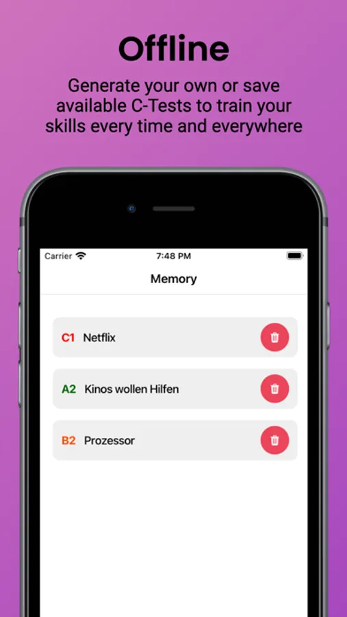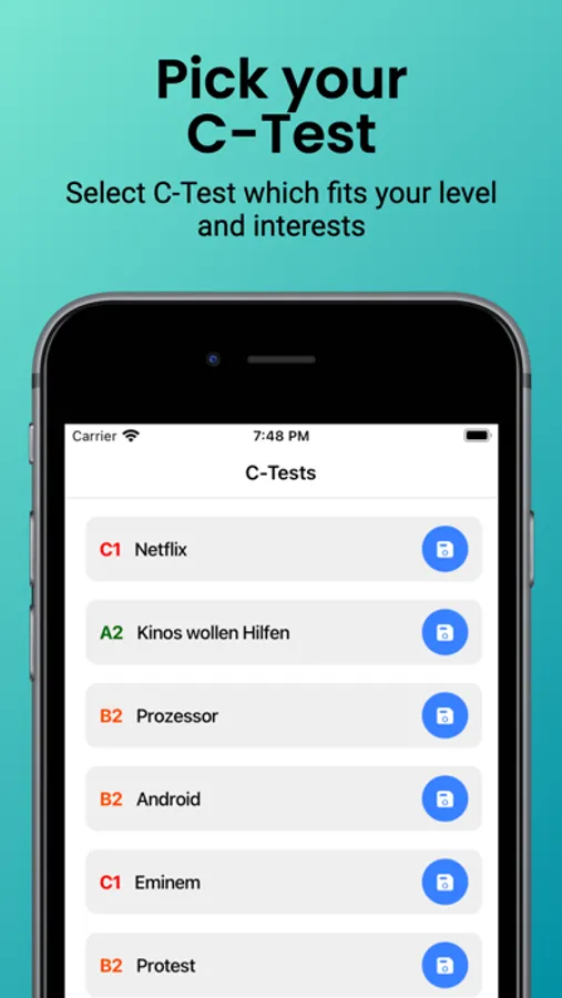 - Train your C-Test skills by practicing with the variety of C-Tests available on the platform or with your locally created C-Tests