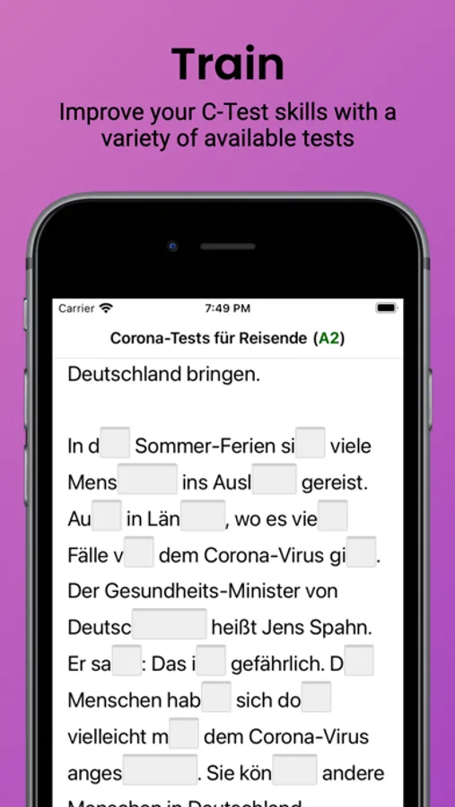 - Get a random C-Test to simulate the real exam situation