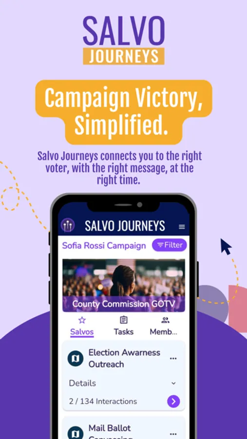 Salvos are predefined instances of voter interaction activities, including canvassing, emailing, texting, mailers and events. Salvo's powerful voter segmentation tools enable precision and resource effectiveness of voter interaction activities.