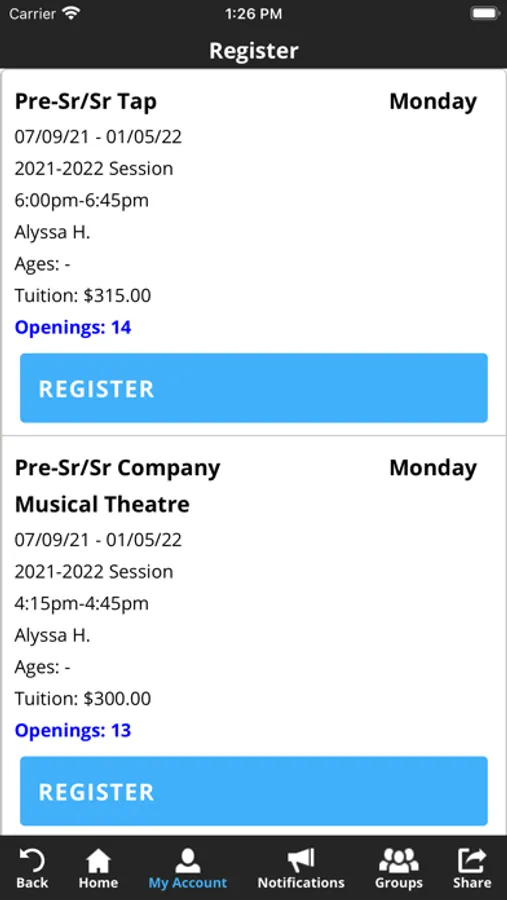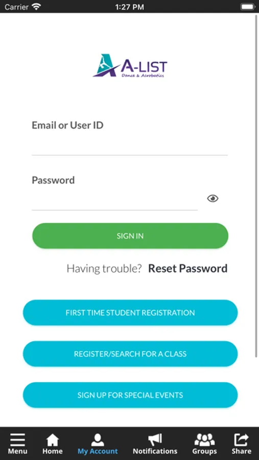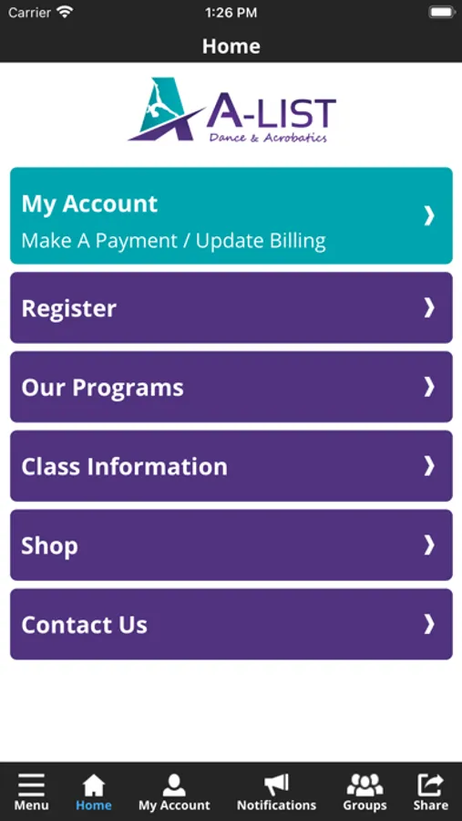 The A-List Dance app allows you to manage your account with ease, register for classes, view tuition & fees, and much more. You'll also receive important notifications about class changes, closings, registration openings, special announcements, and upcoming events.