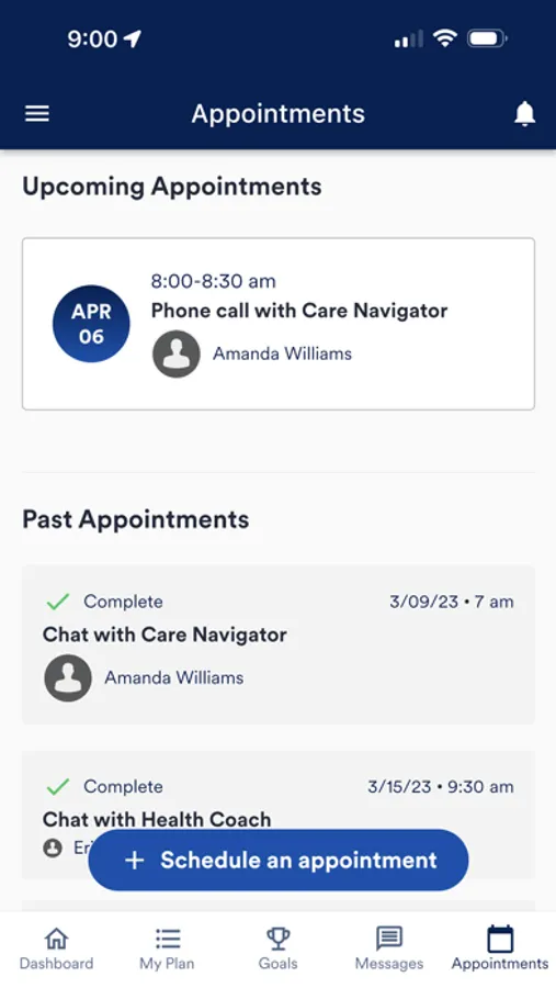 - Your personal Health Coach will schedule regular one-on-one coaching sessions to help answer questions, set goals, complete exercises, and monitor progress.