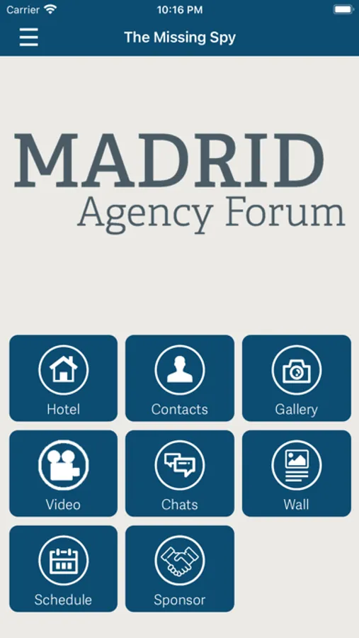 The Missing Spy allows you to access all the information you may need about upcoming events at the Madrid Agency Forum, as well as allowing you to participate in scheduled activities, games and follow the events in streaming or view them later.