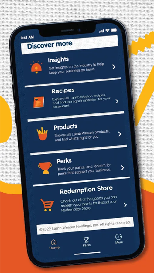 The Potato Perks® app is a fun, new way for restaurant operators to earn points and redeem them for perks that benefit both the front and back-of-house operations like small wares, custom marketing materials and more. Gain access to valuable operator resources like Lamb Weston® frozen potato product information, recipe inspiration and industry insights to help keep your restaurant on trend. Right now, get 500 free points and up to $100 in a product rebate just for downloading and registering for the app.