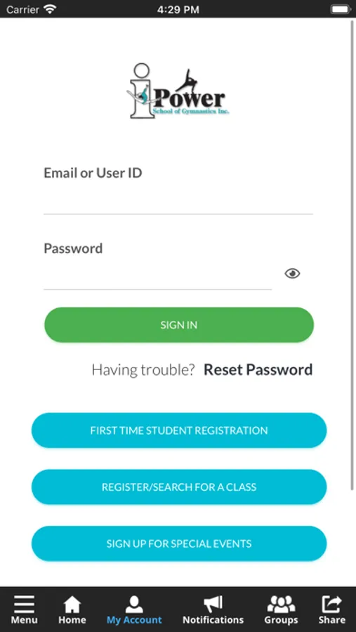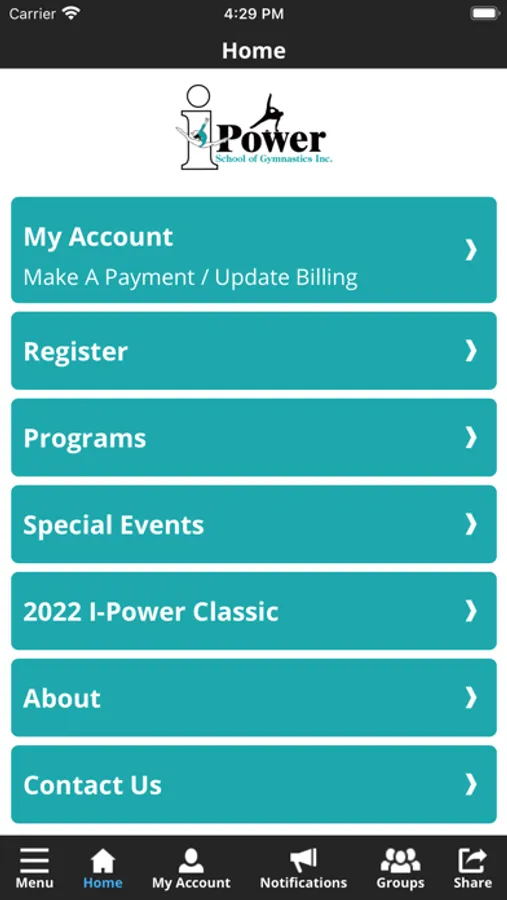 The I-Power Gymnastics app allows you to manage your account with ease, register for classes, parties, and special events. You'll also receive important notifications about class changes, closings, registration openings, special announcements, and upcoming events.
