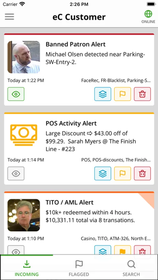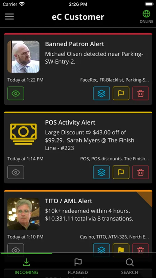 - Mark alerts as seen/unseen and flag important alerts for archive