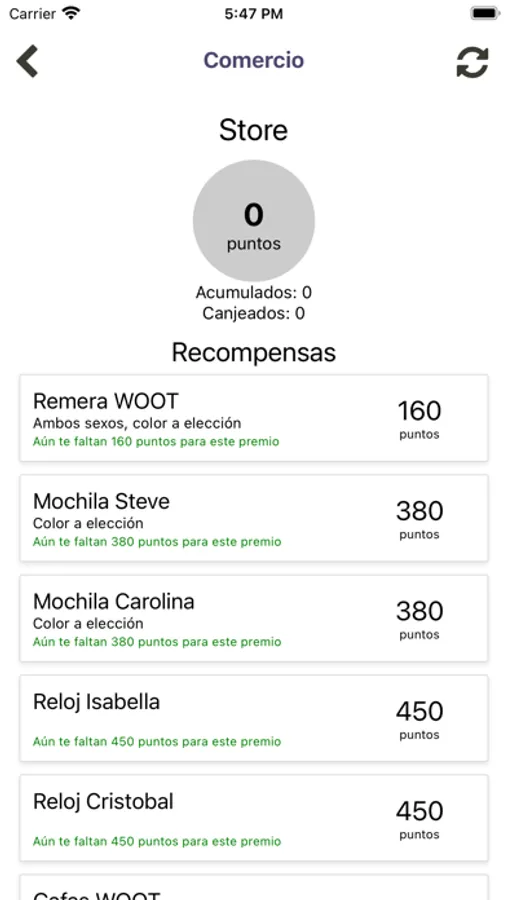 Podrás ver los puntos que vas acumulando y las recompensas que puedes canjear solicitándolas desde la app.