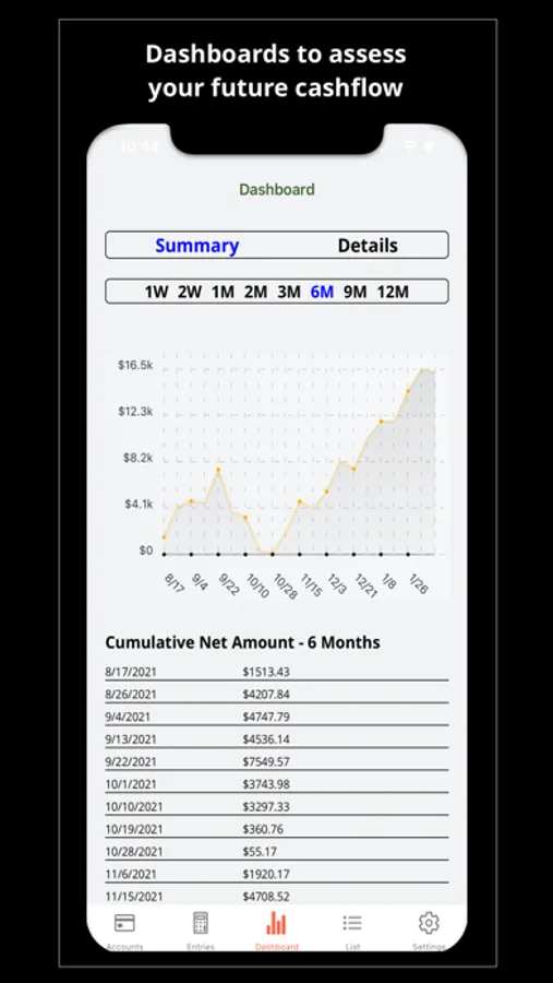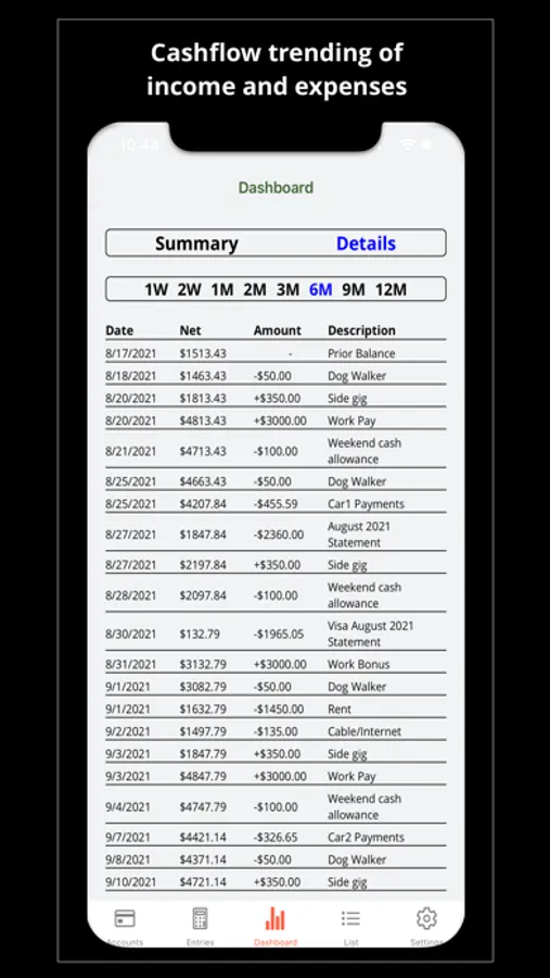 -Use the dashboard summary or detailed view to see where your cash is going up to one year into the future so you can make better financial decisions today
