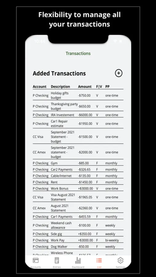 -Flexible entries allow you to add accounts and categories to group your income and expenses