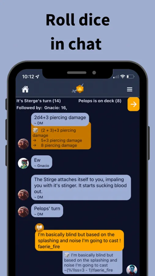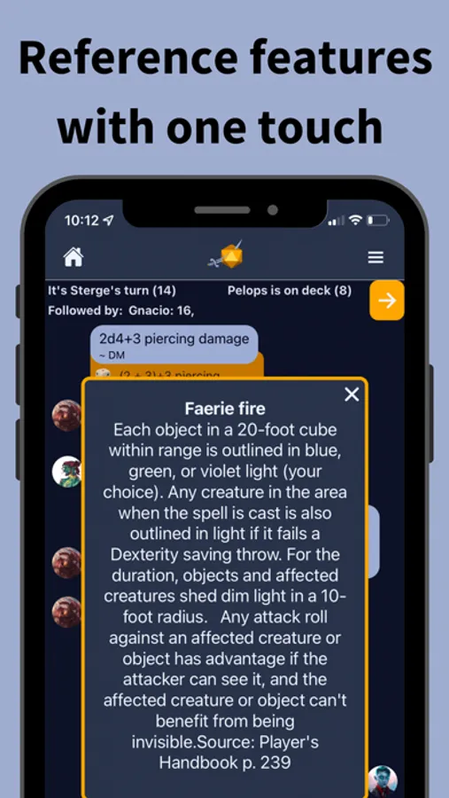 Chat: Roll dice, reply, react, send pictures, send sound recordings, and reference spells and class features with one touch.