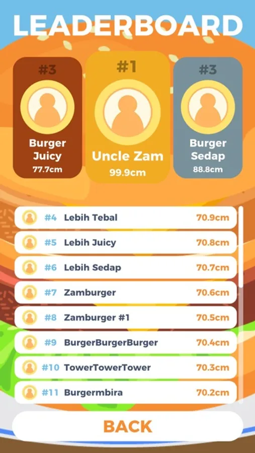 Compare your tower burger with other people in the leaderboard.