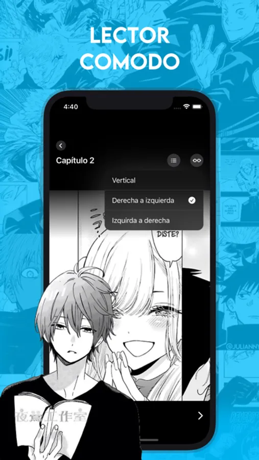 Consejo: La mayoría de los Novelas y Manhuas son de lectura vertical, puedes cambiar el modo de lectura desde el menú de configuración o en el icono de herramienta en el lector.