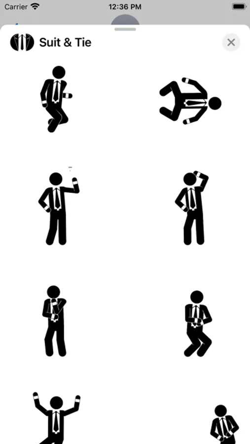 Suit & Tie Emotes is jam packed with 70 animated stickers of an executive male in a suit and tie. This is without a doubt one of the absolute best sticker packs available for iMessage on The App Store! It's full of all sorts of amazing animations related to an assortment of emotions, tasks, feelings, reactions, exercises, and so much more.