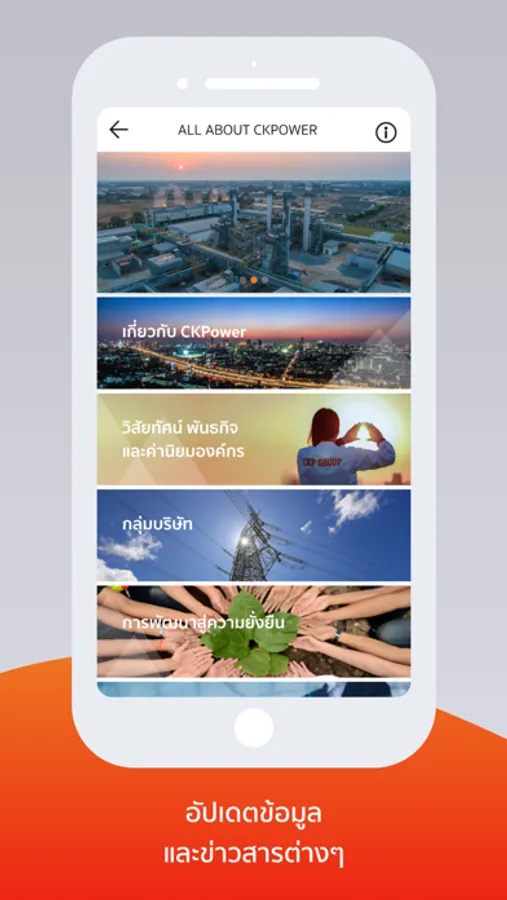 CKPower Application is designed to communicate the latest news of the Company, clean energy business news, the Company’s activities, sustainable development activities and investor relations news as well as a shortcut for transactions between departments.