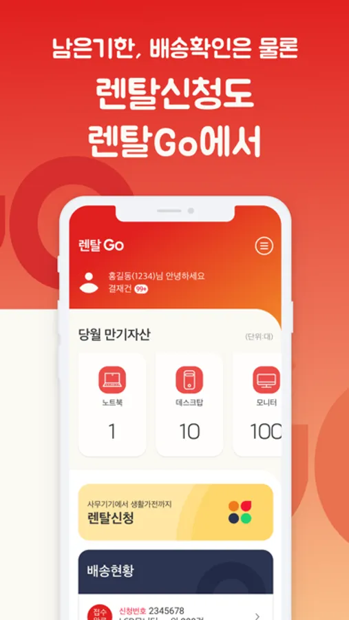 사무기기에서 생활가전까지 편리하게 모바일 앱에서 렌탈하세요