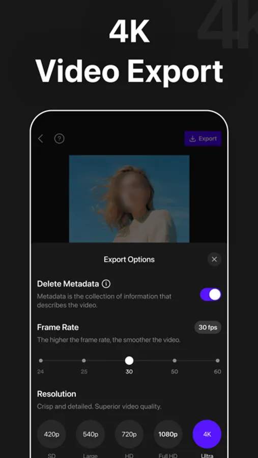 - Export videos in 480p, 540p, 720p, 1080p and Ultra HD - 4K resolution