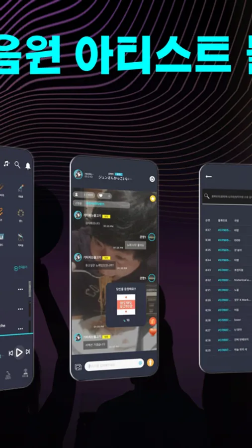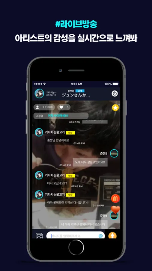 실시간 오디오 스트리밍 콘텐츠로 아티스트와 실시간 소통이 가능하며, 내가 좋아하는 아티스트에게 직접 슈 아이템을 통해 후원할 수 있습니다.