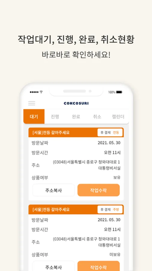 코코수리 마스터들을 위한 작업, 일정, 진행상황등을 관리하기 위한 모바일 어플리케이션