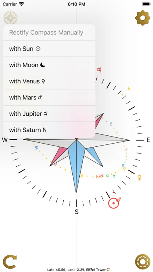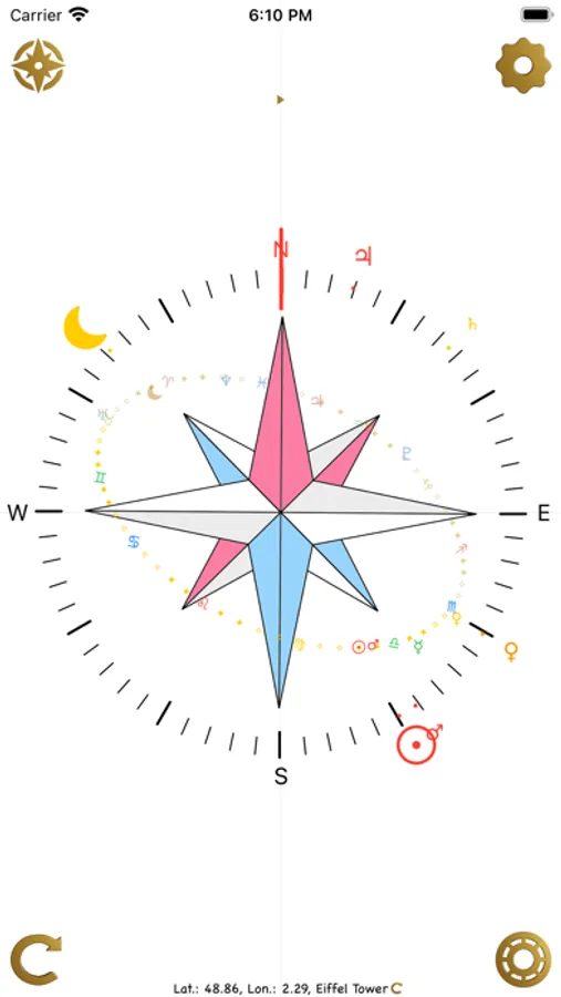 *Drawing the Ecliptic Plane, the Sun, the Moon and the planet symbols on the compass based on your location.