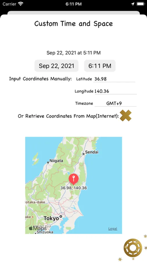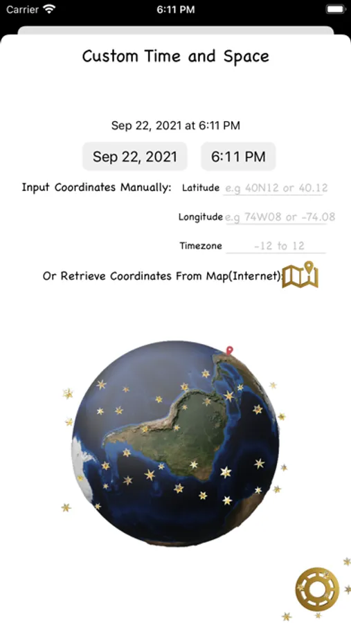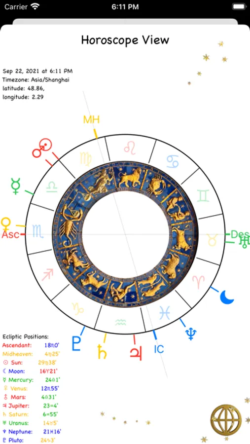 Custom location and time, you could input the latitude and longitude and time to draw the ecliptic items and horoscope chart.