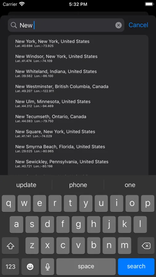 Preset places, there are about 10 preset places(coordinates) at the moment which you could try and get the feeling about how the app works.