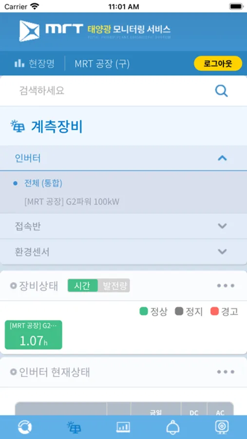 - 태양광 인버터, 접속반 등의 장비별 발전 데이터 제공
