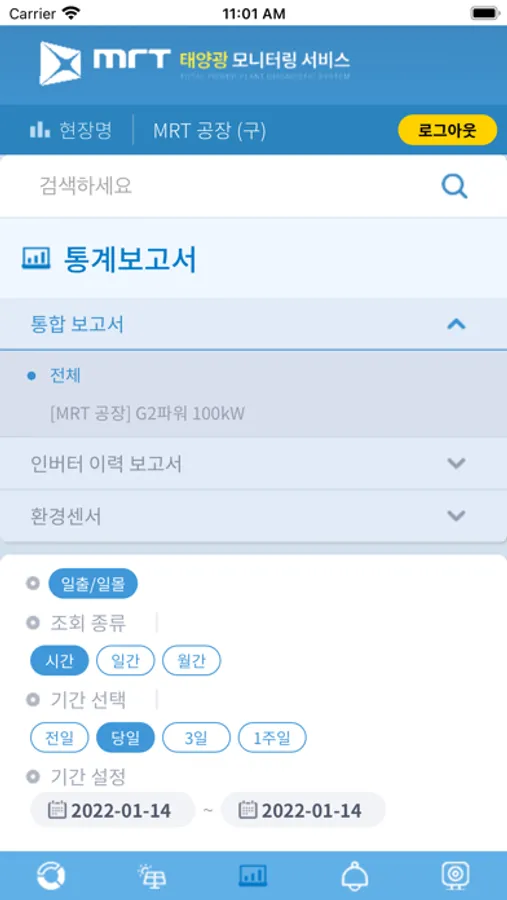 - 시간, 일간, 주간, 년도별 발전 통계 내역 제공