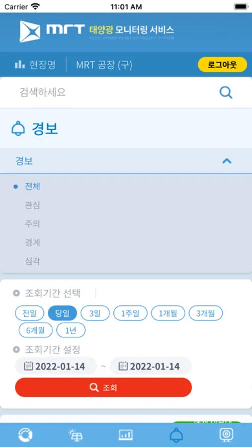 - 경보 페이지를 제공하여 경보 내역 조회 가능