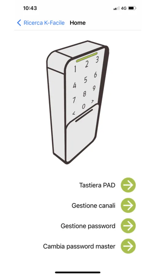 Permette di sfruttare al pieno le potenzialità della tastiera K-Facile. Si possono attivare i canali di trasmissione e memorizzare radiocomandi nei canali di trasmissione della tastiera, inoltre si possono gestire al meglio le 100 password a disposizione.