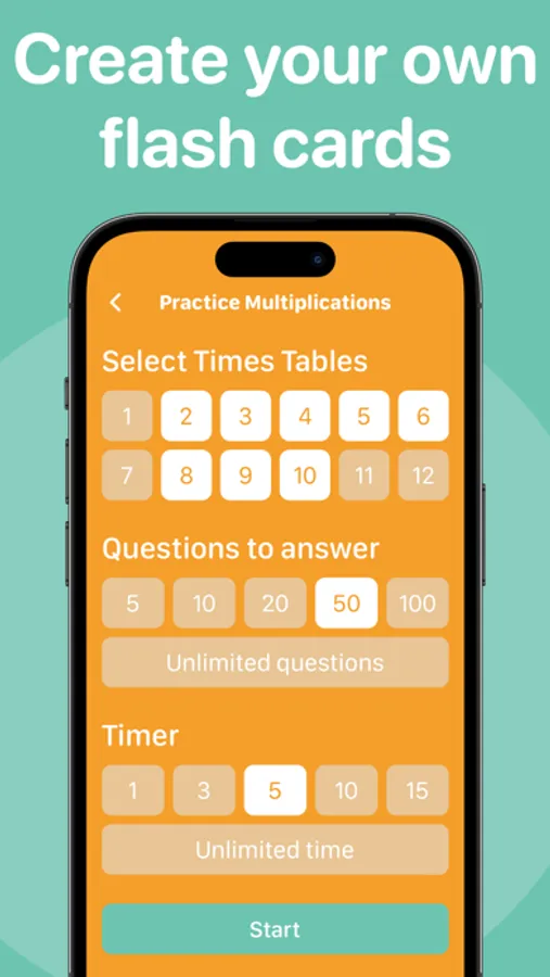 UNLIMITED: you have the option to create an endless flash cards quiz with unlimited facts to solve.