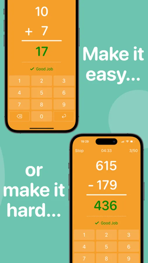 CUSTOMIZABLE: you select what math facts, and the range of numbers you want to practice. Only want to practice additions between 10 and 20? No problem! You set the rules.