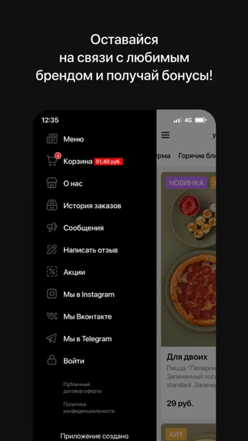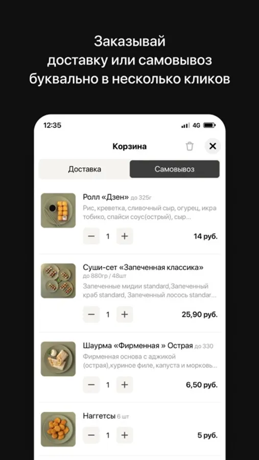 — Быстрый заказ с мгновенным подтверждением через приложение.