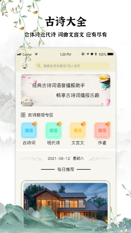 古诗词是一款专门为用户进行古诗播报朗读的助手,包含如下特色功能: