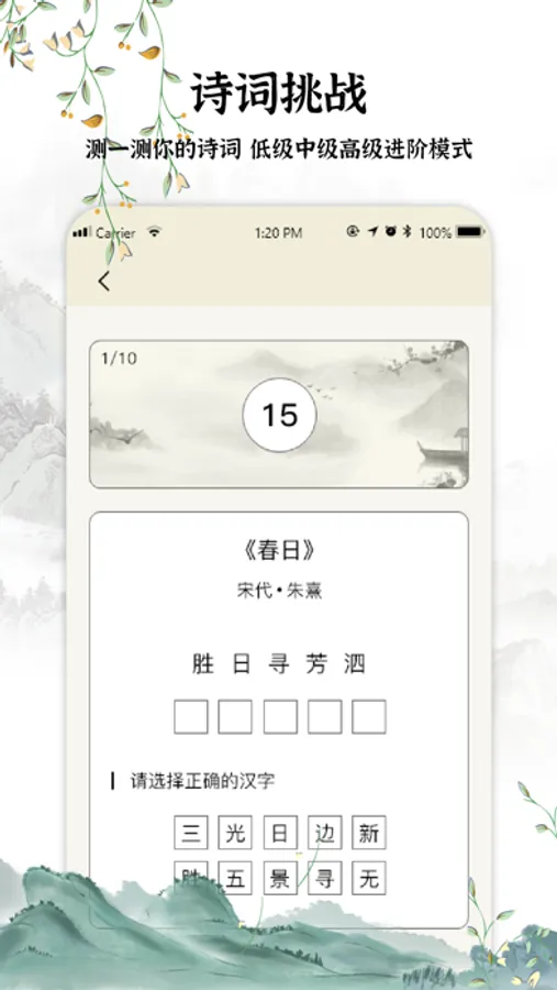 诗词挑战:诗词大全,极限古诗分级挑战。