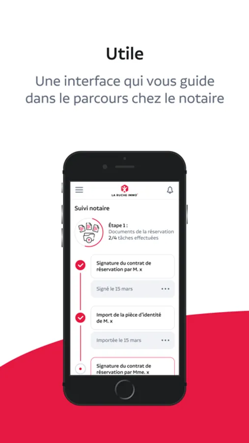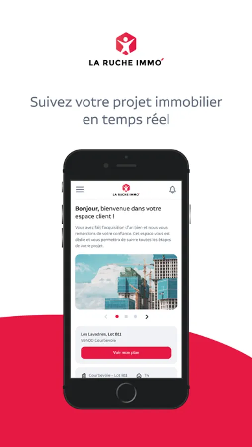 La Ruche Immo' à vos côtes ! Tout au long de votre projet, suivez l'avancée de votre dossier et restez en contact avec votre interlocuteur privilégié. Cette application vous permettra de compléter facilement votre dossier et de signer vos documents en ligne.
