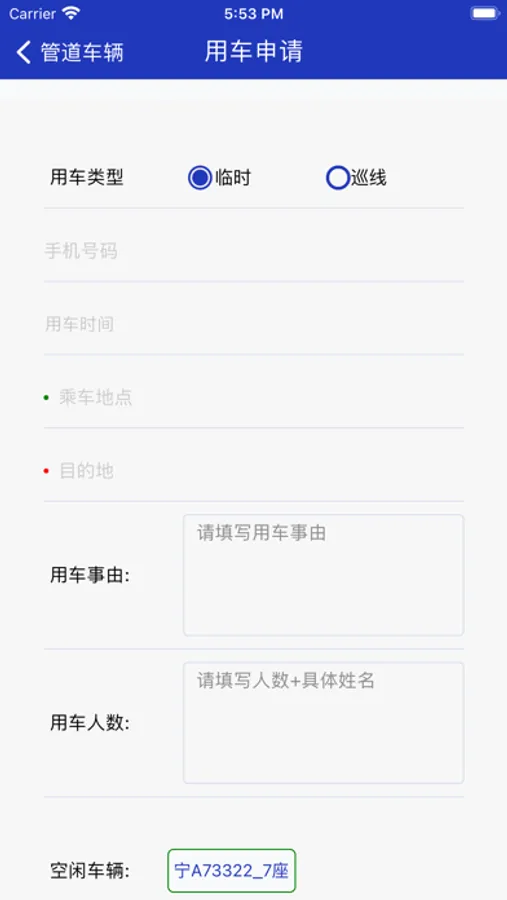 为用户提供巡查用车、临时用车和租赁用车相关的申请和处理流程,更好更快的为用户服务。