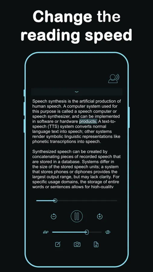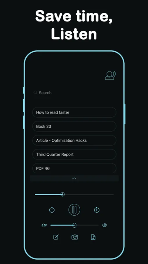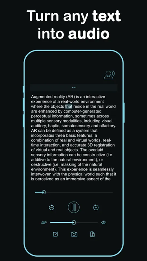 Listen to any text anywhere instead of reading. Save time by turning text into audio.