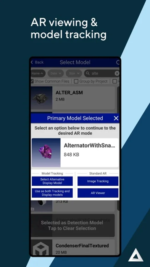 * Model Tracking (alternate model) – Overlays other selected content over the target model to view models within context.