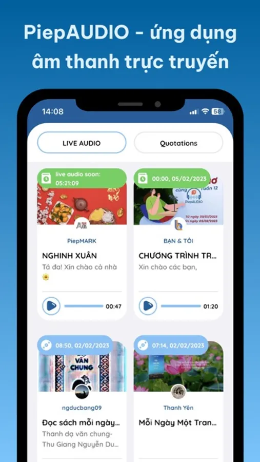 PiepAUDIO is an audio application that belongs to the range of applications PiepMe. On this application, you can freely create content in the form of audio, like creating conversations, consulting, reading books, reviewing books, even teaching - learning online, ... in public or private mode.