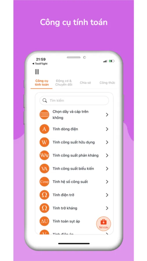 Mã màu điện trở / cuộn cảm, Cầu chì, Tổng trở / tụ điện, Tần số cộng hưởng, Bộ chia điện áp, Bộ chia dòng, Điốt Zener làm ổn áp, Điện trở giảm áp, Điện trở led, Tuổi thọ pin, Cuộn sơ cấp / thứ cấp của máy biến áp, Chiều dài ăng ten, Máy tính ổ cứng / băng thông CCTV.